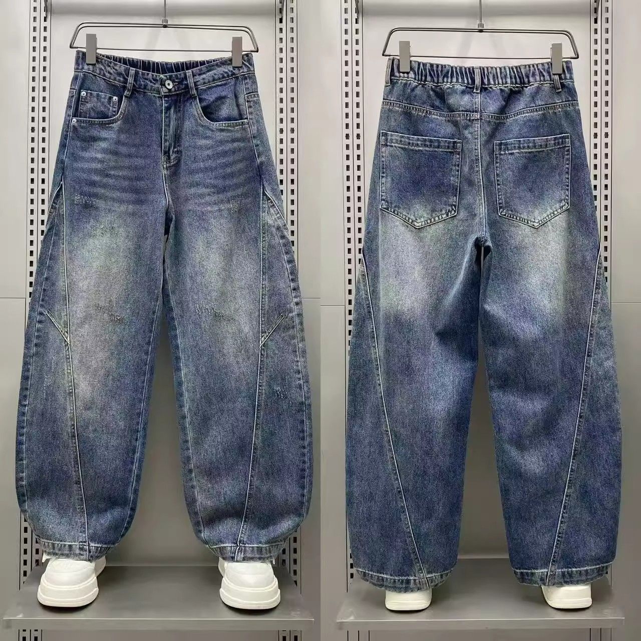 + Free ShippingDeep blue sand wash high end denim pant (Loose fitting)